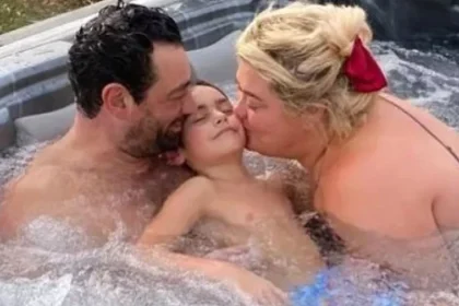 تشارك جيما كولينز لحظة عائلية لطيفة مع خطيبها رامي وهي تقبل ابن زوجها الذي نادرًا ما يُرى على الخد