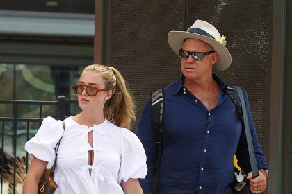 يصل ماثيو هايدن وابنته جريس إلى مطار بيرث قبل ظهور مهرجان Crab في غرب أستراليا