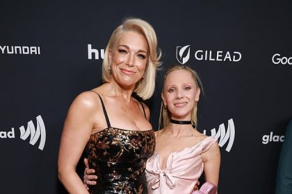 هانا وادينجهام ترتدي فستانًا صدريًا مزينًا بالترتر بينما تنضم إلى النجم جونو تيمبل الذي شارك في بطولة Ted Lasso في حفل توزيع جوائز GLAAD Media المرصع بالنجوم