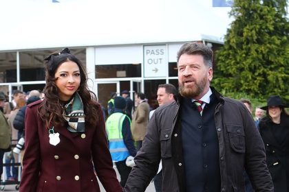 نيك نولز، 61 عامًا، وخطيبته كاتي دادزي يمسكان بأيديهما عند وصولهما إلى اليوم الثالث من مهرجان شلتنهام المليء بالنجوم.