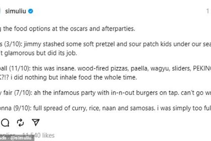 يكشف Simu Liu عن الأطعمة التي يتم تقديمها في القائمة الأولى في حفل توزيع جوائز الأوسكار – وهي ليست براقة كما قد تظن