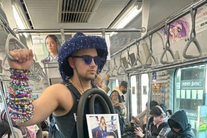 هذا التفاني! يكشف أحد المعجبين الراديكاليين بتايلور سويفت عن ملابسه الجامحة أثناء حضوره عرض نجمة البوب في اليابان – ولماذا لا ينظر إليه أحد في القطار إلى الحفلة