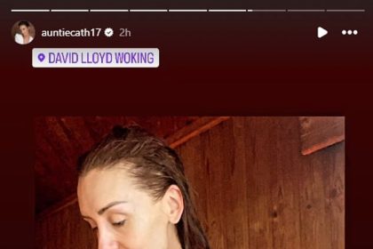 كاثرين تيلديسلي تظهر انقسامها في ملابس السباحة البنية العميقة وهي تلتقط صورة مثيرة أثناء الاسترخاء في الساونا