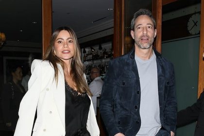 صوفيا فيرغارا تقبل وردة من أحد المعجبين أثناء مغادرتها عشاء رومانسي مع صديقها جاستن سليمان في لوس أنجلوس