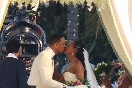 ويل سميث، 55 عامًا، وميلاني ليبورد، 36 عامًا، يقبلان ويتزوجان أثناء تصوير المشاهد النهائية في مجموعة ميامي لفيلم Bad Boys 4