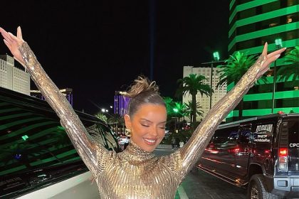 مورا هيغنز تتألق بفستان ذهبي قصير أثناء احتفالها في لاس فيغاس وتشاركها لقطات من الرحلة