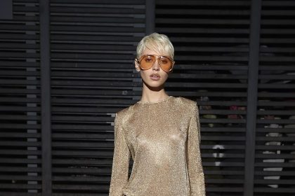 إيريس لو تتألق بفستان ذهبي قصير شبه شفاف وهي تنضم إلى إيفا جرين الأنيقة في عرض توم فورد خلال أسبوع الموضة في ميلانو