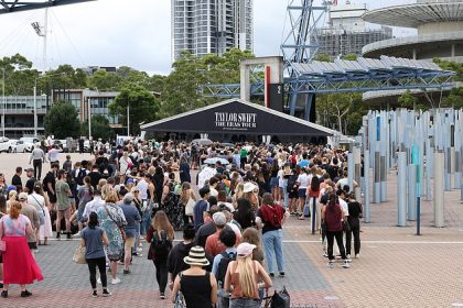 يصطف فريق سيدني سويفتيز لمدة سبع ساعات في ساحة كودوس لشراء بضائع Eras Tour – حيث يقوم نجم البوب بفحص الصوت في الداخل