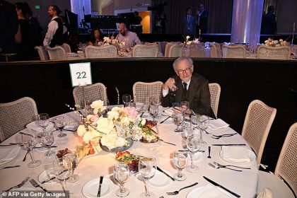 يبدو ستيفن سبيلبرغ وحيدًا بينما يطير منفردًا ويجلس بمفرده في بداية حفل غداء ما قبل حفل توزيع جوائز الأوسكار المرصع بالنجوم
