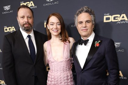 إيما ستون تتألق بفستان وردي قصير إلى جانب إيفا لونجوريا وغريتا جيرويج في حفل توزيع جوائز نقابة المخرجين لعام 2024 في لوس أنجلوس