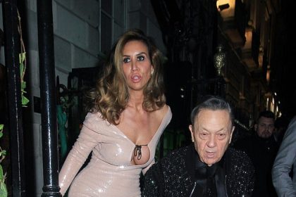 تبدو أمبيكا بيكستون، من RHOC، البالغة من العمر 42 عامًا، رائعة في فستان طويل من الشمبانيا بينما تستمتع بقضاء ليلة في الخارج مع خطيب رئيس وست هام ديفيد سوليفان، 75 عامًا.