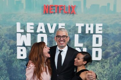 جوليا روبرتس هي أجمل امرأة في المدينة وهي ترتدي فستانًا قصيرًا يصل إلى الفخذ وترتدي حذاءً فضيًا مبهرًا في حفل إطلاق الفيلم الجديد في المملكة المتحدة “اترك العالم خلفك”