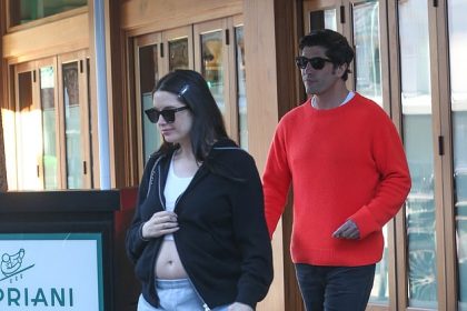 تحاول أشلي بنسون تغطية بطنها بغطاء للرأس بينما يتبعها زوجها براندون ديفيس خارج منطقة سيبرياني الساخنة الجديدة في بيفرلي هيلز.