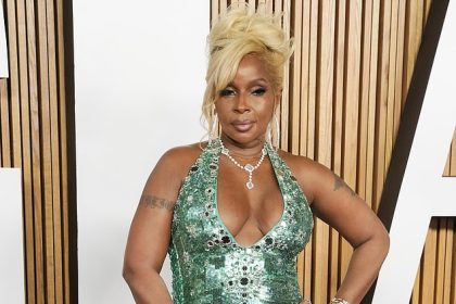 Braless Mary J. Blige، 52 عامًا، تذهل في ثوب أخضر مطرز بالترتر أثناء تكريمها في حفل توزيع جوائز Glamour Women of the Year المرصع بالنجوم