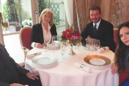 يسخر ديفيد بيكهام من ادعاءات زوجته فيكتوريا بأنها “من الطبقة العاملة” بينما يستمتعان بوجبة غداء فاخرة
