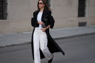قام بإقران المعطف ببالة حمراء مطابقة وأحذية سوداء أثناء انتظار تعليمات من المخرج.