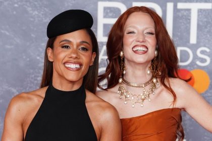 قامت بإقران تدخلها التجميلي الجديد مع سترة كريمية وملابس بيضاء من الكتان مكونة من قطعتين بينما كانت كالوم سكاي مطابقة الألوان في قميص بولو أبيض بسحاب وشورت كريمي
