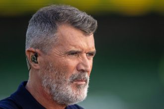 ارتدى مخرج فيلم nepo baby قميصًا قرمزيًا مع بنطال أسود ومعطفًا أنيقًا من الكشمير.