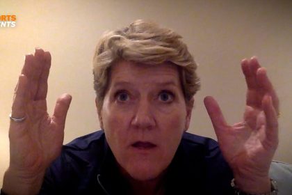 ارتدت الممثلة المرشحة لجائزة توني نظارة شمسية سوداء وصندلًا مفتوحًا من الأمام أثناء وقوفها بجانب زوجها في العرض.