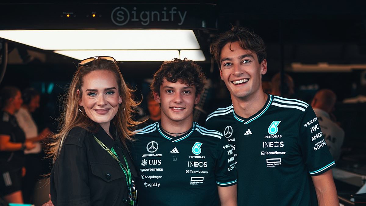 وعرضت أديل قوامها المتناغم وفقدان وزنها بشكل لا يصدق في قميص أسود بأزرار وسروال مطابق لها، بينما وقفت لالتقاط صورة مبهرة إلى جانب سائقي مرسيدس جورج راسل وكيمي أنتونيلي.