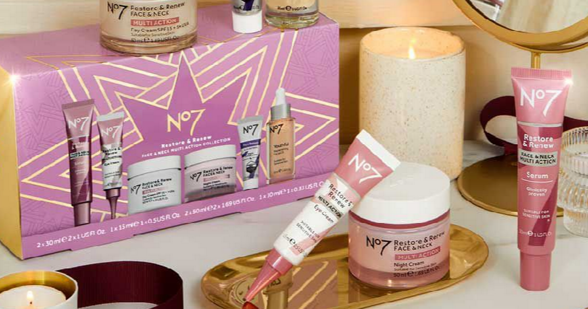 1. مجموعة No7 Restore & Renew للوجه والرقبة – 64.95 جنيهًا إسترلينيًا