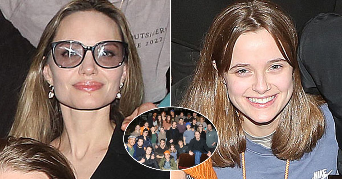 وقفت أنجلينا جولي مع ابنتها المراهقة وطاقم مسرحيتهم الموسيقية الجديدة The Outsiders أثناء استعدادهم لليلة الافتتاح في برودواي.