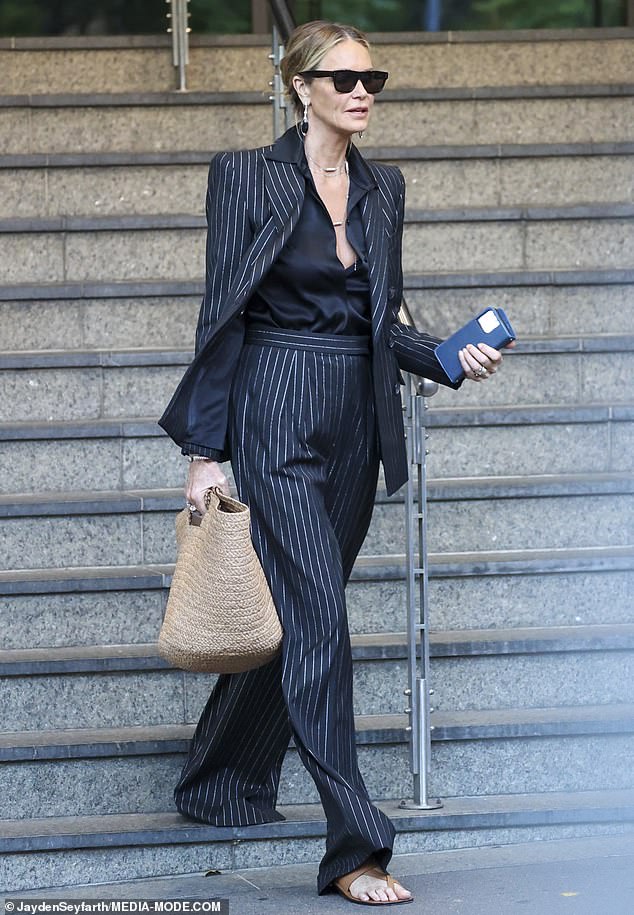 خرجت العارضة البالغة من العمر 59 عامًا من استوديوهات القناة العاشرة في سيدني بعد مقابلتها في برنامج The Sunday Project ببدلة مقلمة أنيقة
