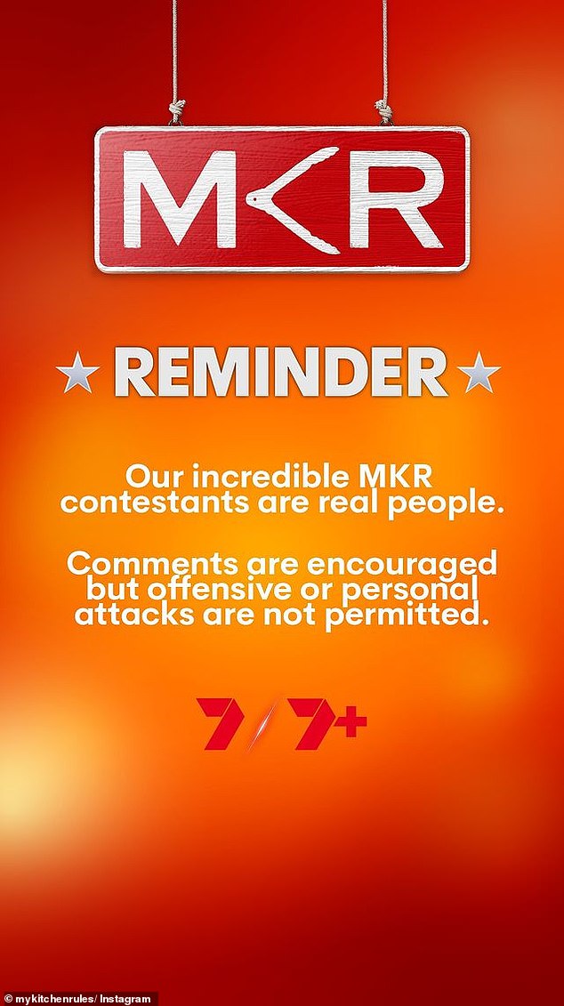 “هل هناك أي شخص آخر يسيء إلى منشور القناة السابعة؟” علق أحد مشاهدي MKR قائلاً: