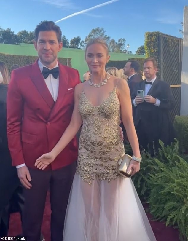 يعمل محققو وسائل التواصل الاجتماعي بجد لمعرفة ما كان يتحدث عنه جون كراسينسكي وإيميلي بلانت على السجادة الحمراء في حفل توزيع جوائز غولدن غلوب.