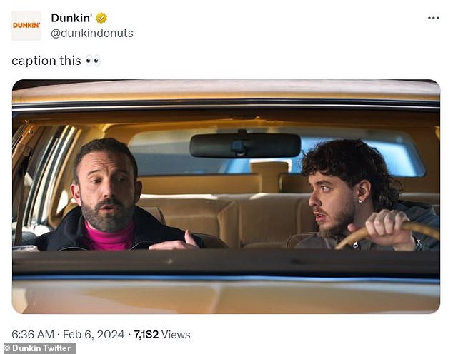 وشوهد النجمان في صورة نشرتها Dunkin ‘Donuts على موقع X (تويتر رسميًا) صباح الثلاثاء.