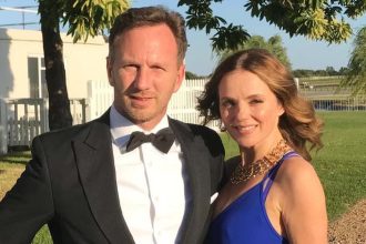 وظهر المذيع المخضرم ريتشارد ويلكنز، 71 عامًا، بمظهر أنيق يرتدي سترة سوداء أنيقة وقميصًا أبيض ناصعًا وسروالًا مطابقًا. في الصورة مع صديقته ميا هوكسويل