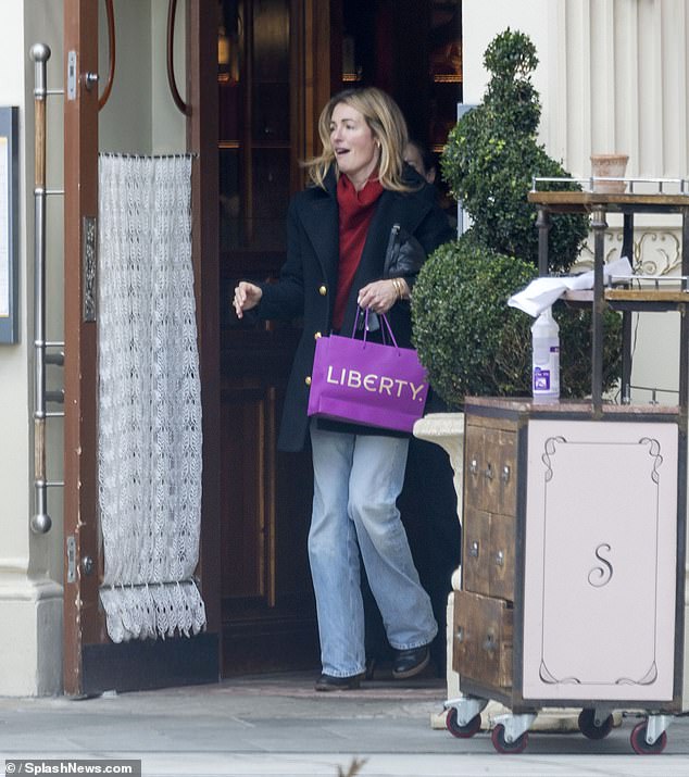 قبل مأدبة الغداء الفخمة، قامت كات برش النقود في متجر ليبرتي لندن أثناء خروجها بحقيبة المتجر الشهيرة.