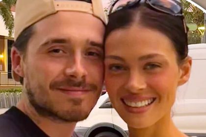صنع جوش سميث وفيليسيتي هايوارد زوجًا جريئًا – جوش يرتدي بدلة كريمية مع تي شيرت أسود برقبة واسعة وفيليسيتي بطبعة الفهد باللونين الوردي والأحمر.