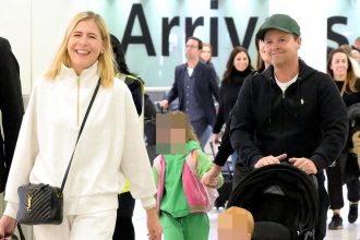 ويبدو أن AJ وويل، 39 عامًا، قاما بتنسيق ملابسهما حيث قام أيضًا بتصميم بريق أسود في سترة مطرزة.