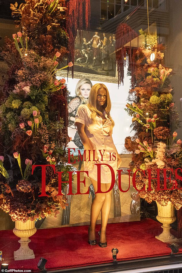 كُتبت على الزجاج الكلمات التالية: “Emily is The Duchess”، في إشارة إلى الشخصية التي لعبتها في حملتها الإعلانية الملفتة للنظر Agent Provocateur.