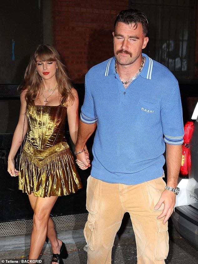 واكتشفت سويفتيز الإصابة في صور تايلور، 34 عامًا، وهي تستمتع بليلة مع صديقها ترافيس كيلسي في مدينة نيويورك مساء السبت.