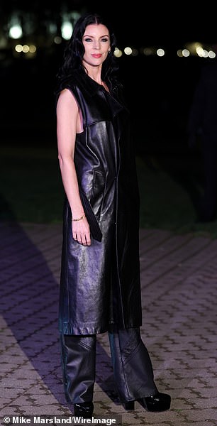 تميز مظهر ليبرتي بخندق بأكمام أظهر ذراعيها المتناغمتين مع زوج من السراويل الجلدية المتطابقة.