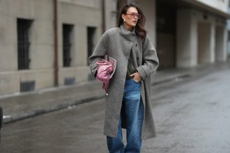 ارتدت نجمة تلفزيون الواقع معطفًا ضخمًا بلون أسمر يحتوي على حافة تصل إلى كاحليها