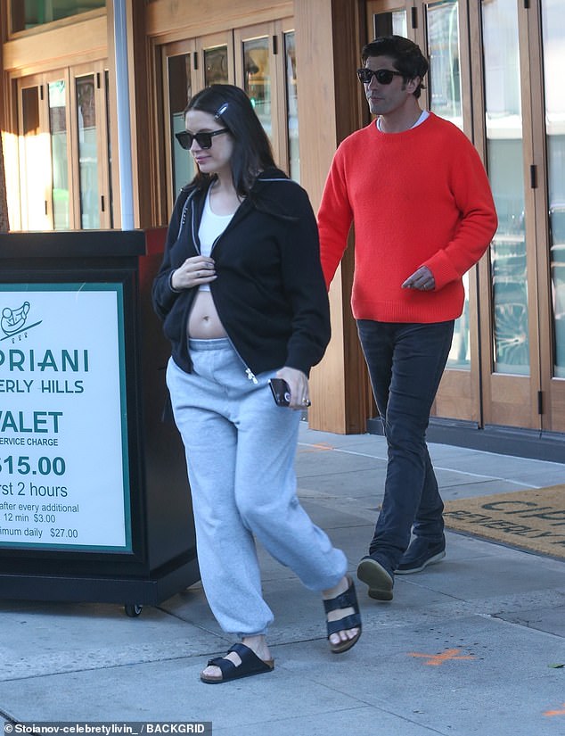 أضافت سترة سوداء بغطاء للرأس وسحبت من الحواف لمحاولة تغطية بطنها لكن لم يحالفها الحظ. كان النجم البالغ من العمر 34 عامًا يرتدي بنطالًا رياضيًا باللون الرمادي الفاتح وصنادل بيركنستوك السوداء لمزيد من الراحة