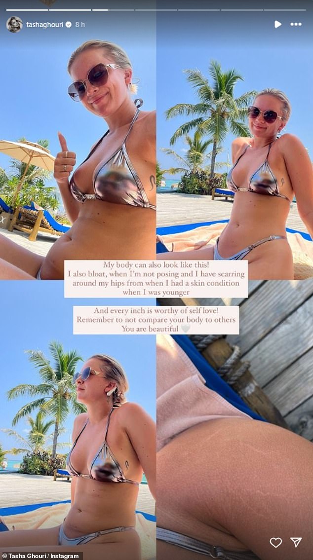 يأتي ذلك بعد أن أظهرت تاشا قوامها المتناغم في بيكيني أزرق اللون في وقت سابق من هذا الأسبوع أثناء استمتاعها ببعض الوقت في جزر المالديف.