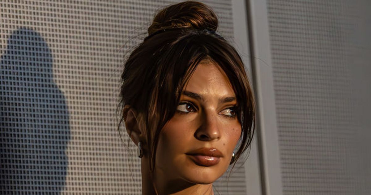 لقطة مثيرة أخرى في المجموعة كانت لإميلي وهي تقف على الشاطئ وهي تشرب شيئًا من كأس. كانت ترتدي فستانًا داخليًا بطبعات الفهد مع دانتيل أسود حول الأشرطة والصدر. رفعت النجمة جانبها بوقاحة، وأظهرت ساقها العارية.