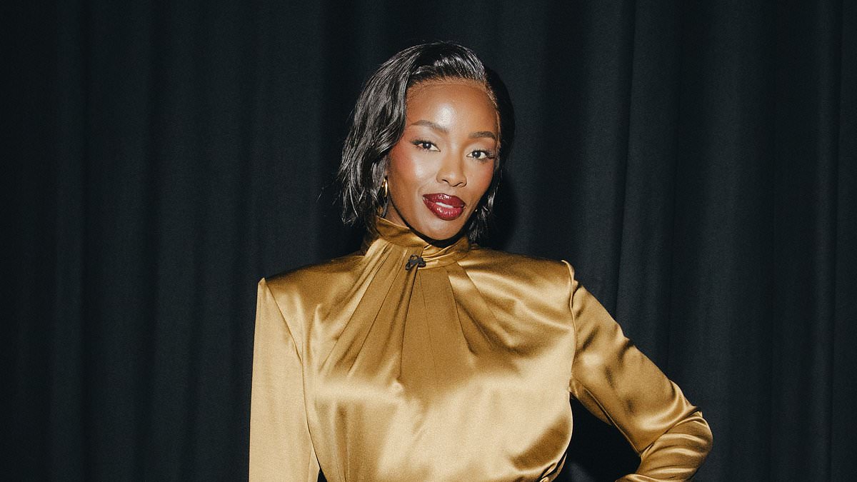 كان مقدم العرض ، 37 عامًا ، يرتدي فستانًا صغيرًا من الحرير الذهبي مع منصات الكتف ذات التفصيل العالي والكتف ، والتي تم وضعها في الخصر بحزام الجلد.