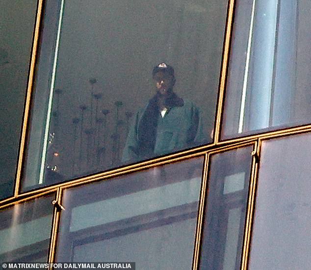 شوهد ترافيس كيلسي وهو يعجب بالمناظر الخلابة من غرفته الفخمة في فندق سيدني بعد هبوطه في أستراليا صباح الخميس.