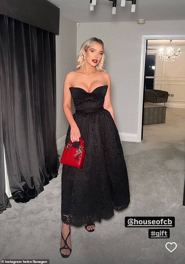 من أجل عشاءها الفاخر، حرصت هيلين على الظهور بأناقة في فستان من House of CB أضاف بوصات إلى إطارها بكعب أسود مفتوح من الأمام وحقيبة حمراء زاهية.
