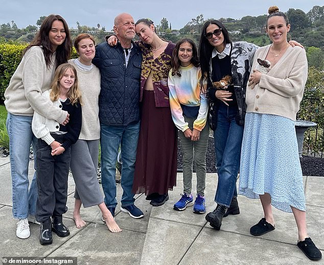 بروس تجمعت العائلة المخلوطة حوله وسط مرضه ، بما في ذلك زوجته السابقة ديمي مور وبناتهم رومر ، 37 ، الكشافة ، 34 ، وتالوله ، 31.