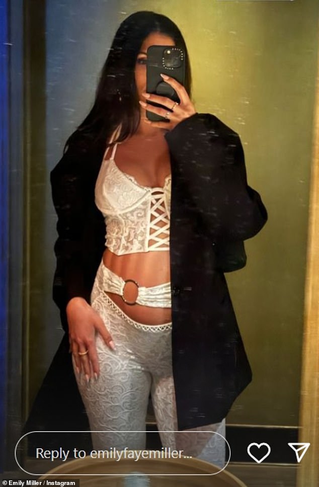 أظهرت إميلي ميلر نتوء طفلها المتنامي في مشد أمامي من الدانتيل الأبيض بينما كانت تلتقط صورًا على Instagram يوم الأربعاء خلال إجازتها الفخمة في لوس أنجلوس