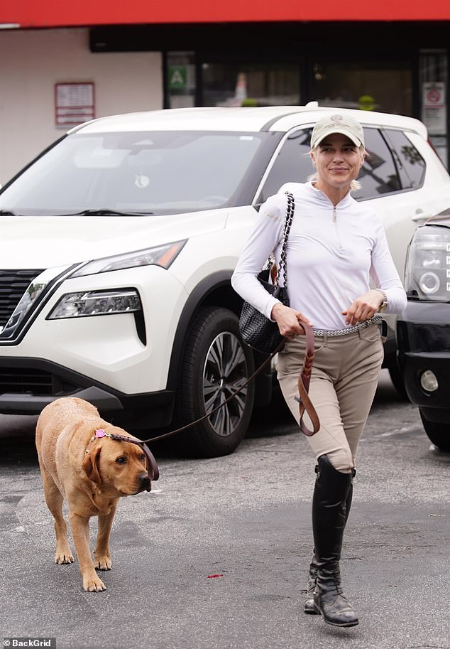 بدت الممثلة البالغة من العمر 51 عامًا لائقة وسعيدة وهي تبتسم ابتسامة عريضة بينما كانت تبدو رشيقة في ملابس الفروسية.