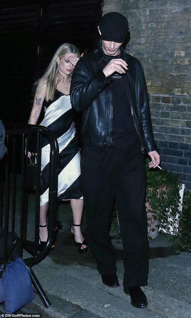 لوتي، 26 عامًا، التي حاولت حماية وجهها من الكاميرات، بدت رائعة أثناء النزهة بفستان قصير مخطط بالأبيض والأسود.