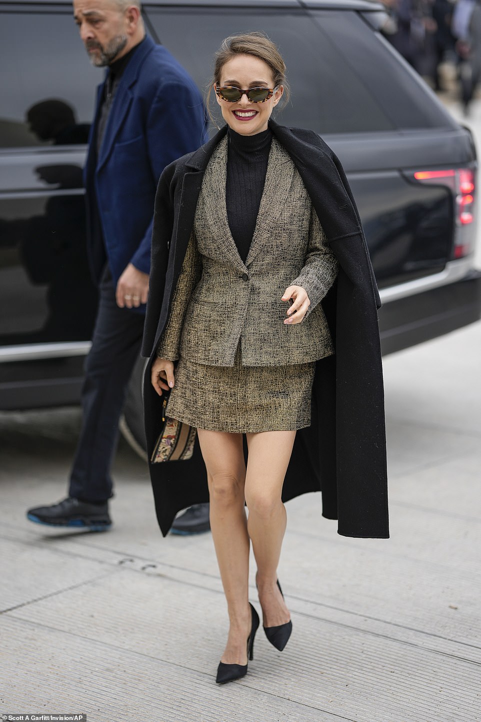 اختتمت ناتالي يومها بمعطف أسود، وقامت بتصفيف خصلات شعرها ذات اللون البني في تسريحة محدثة لهذا الحدث.