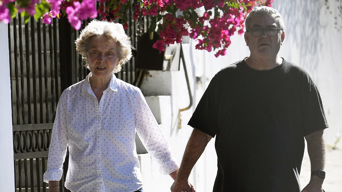وبدت الممثلة مسترخية وفي حالة معنوية جيدة أثناء نزهة تحت أشعة الشمس